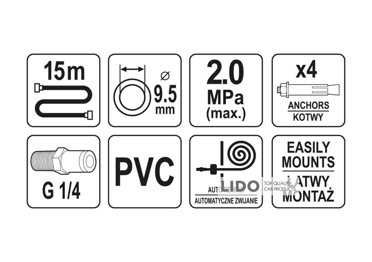 Шланг для пневмоинструмента YaTo на катушке 9.5мм 15м