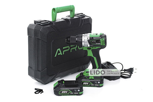 Дрель-шуруповерт бесщеточный Apro 20DB 20В 2А 2 АКБ ЗУ в кейсе