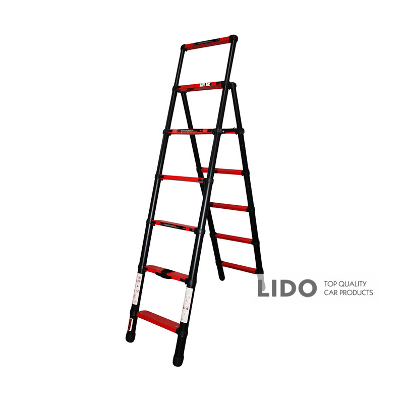 GTM KME5067B - телескопическая алюминиевая стремянка в форме двухсторонней А-образной стремянки, которая отлично подходит как для бытового, так и профессионального использования. У данной модели стремянки максимальная высота до верхней ступени регулируется до 161 см.