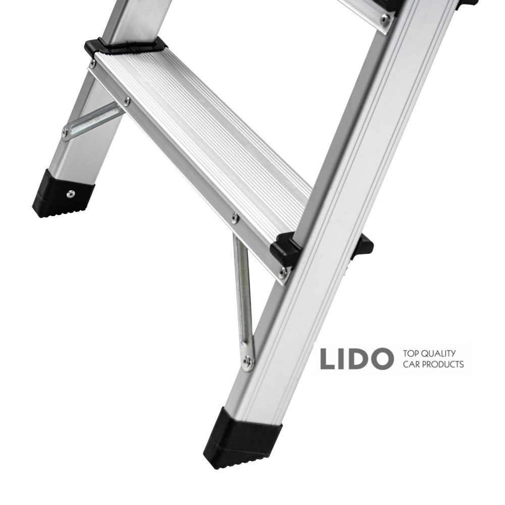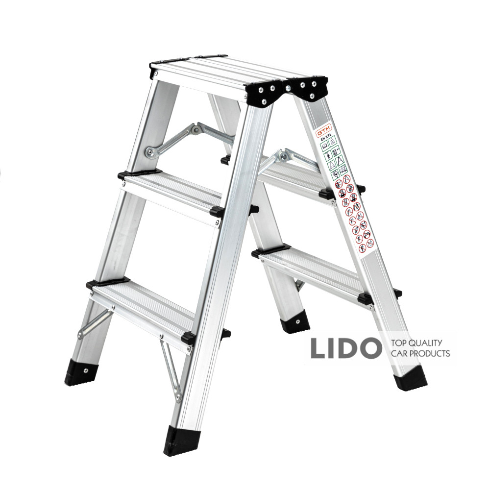 Лестница двусторонняя GTM KMH1203 — компактная алюминиевая лестница в форме двусторонней лестницы, идеально подходит для бытового и профессионального использования. Модель имеет 3 ступени, максимальная высота до верхней ступени составляет 58 см.