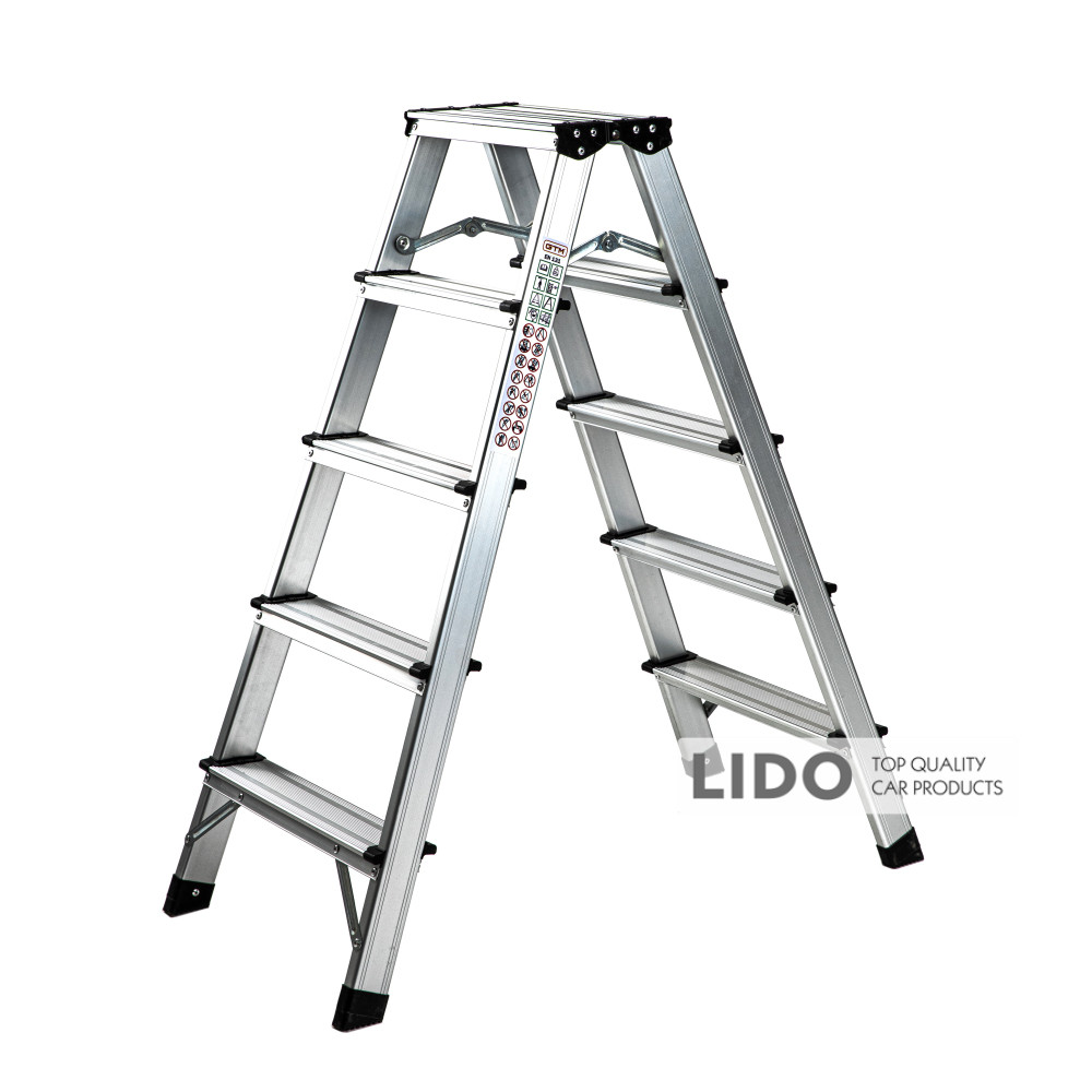 GTM KMH1205 – компактная алюминиевая стремянка в форме двусторонней стремянки, которая отлично подходит как для бытового, так и для профессионального использования. У данной модели 5 ступенек и максимальная высота до верхней ступени 98 см.Общее количество ступеней 10 шт