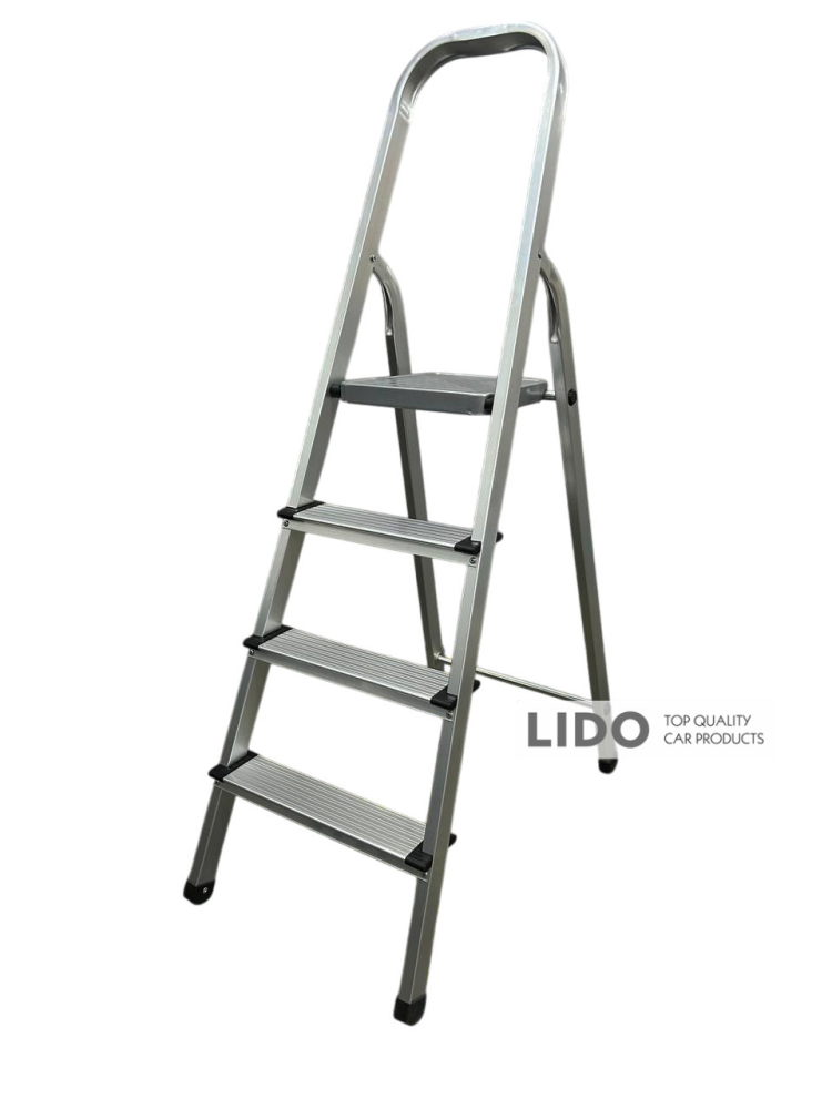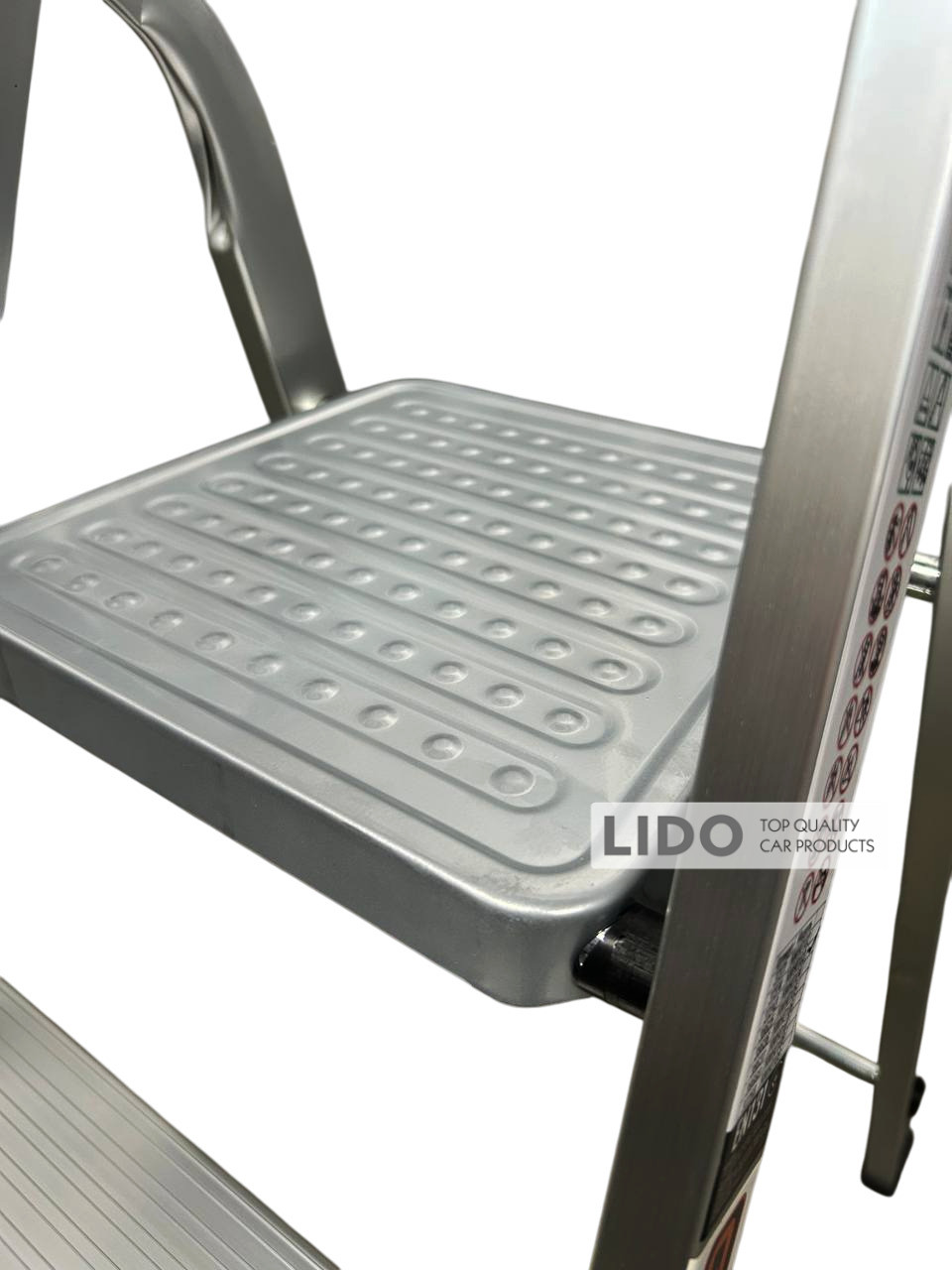 Имеет клепаное соединение ступенек с боковинами профиля и прочную металлическую платформу с антискользящим профилем. Надежные антискользящие упоры обеспечивают безопасность при работе.