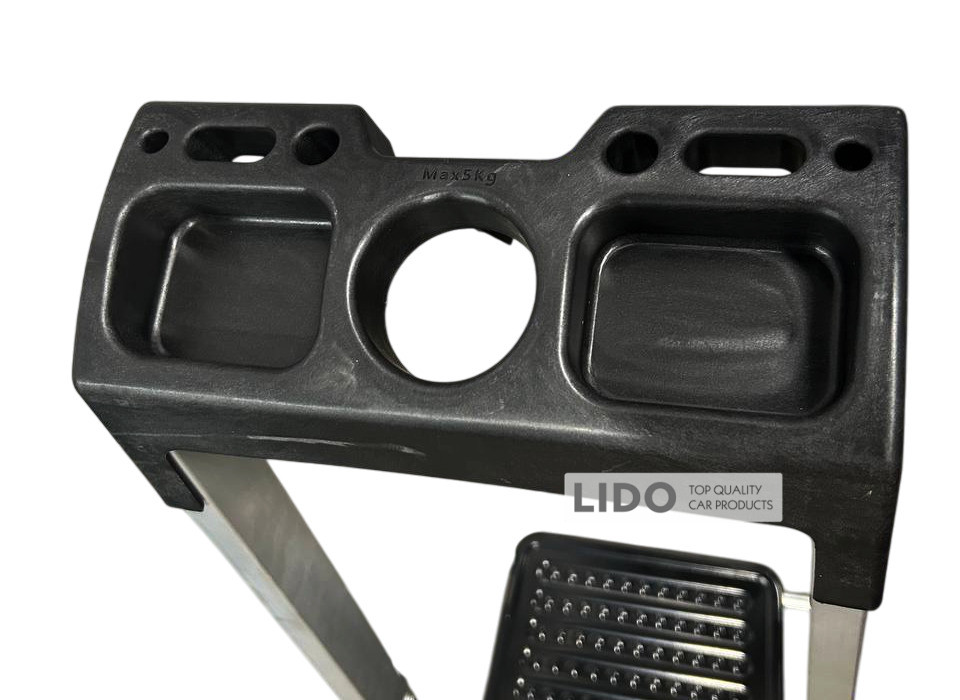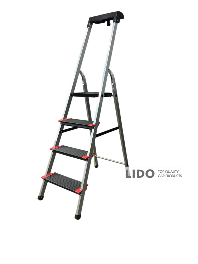 Имеет клепаное соединение ступенек с боковинами профиля и прочную металлическую платформу с антискользящим профилем. Надежные антискользящие упоры обеспечивают безопасность при работе.
