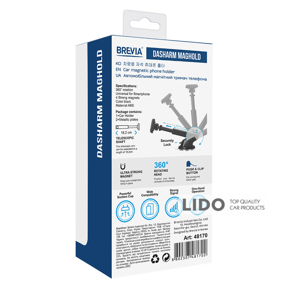 Держатель телефона автомобильный Brevia FlexArm MultyHold – удобный и надежный аксессуар для крепления вашего смартфона в автомобиле.