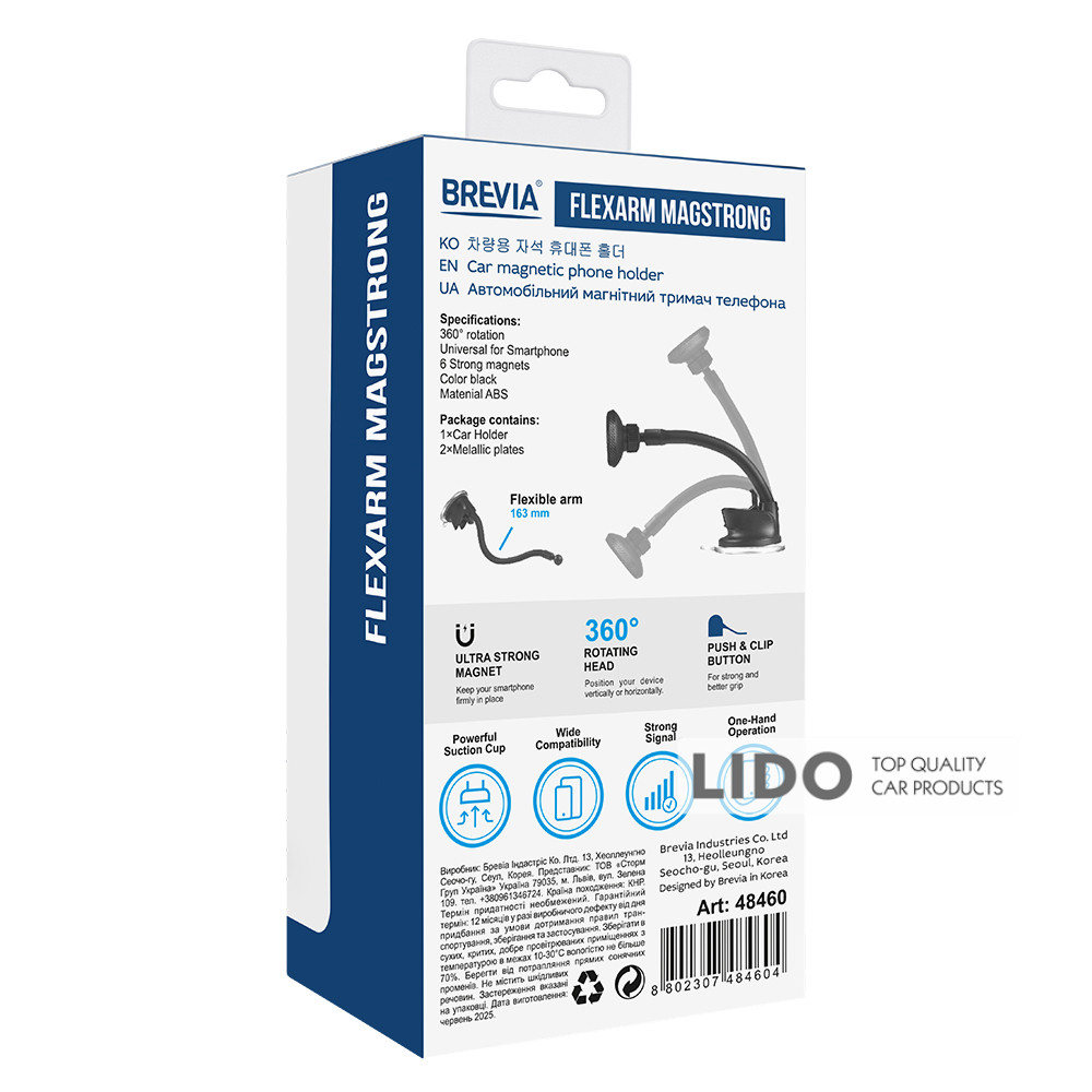 Держатель телефона автомобильный Brevia FlexArm MagRING – удобный и надежный аксессуар для крепления вашего смартфона в автомобиле.