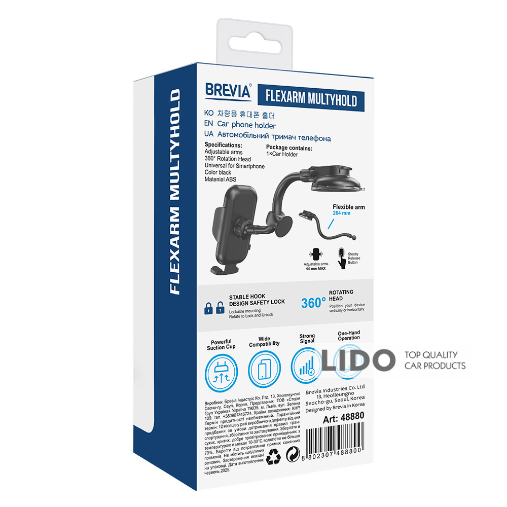 Держатель телефона автомобильный Brevia FlexArm MultyHold – удобный и надежный аксессуар для крепления вашего смартфона в автомобиле.