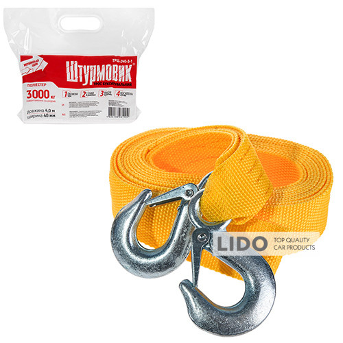 Трос буксировочный Штурмовик 3т лента 40мм х 4м желтый