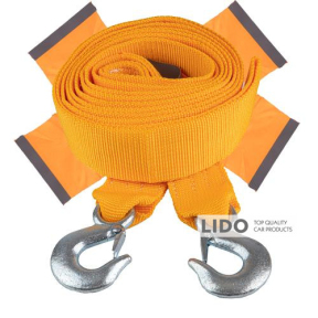 Трос буксировочный Vitol 6т (лента 60 мм × 5 м) с двумя металлическими крючками, флажками и сумкой предназначен для безопасной буксировки тяжелых автомобилей. Изготовлен из крепкого полиэстера, выдерживает нагрузку до 6 тонн и обеспечивает надежную фиксацию и удобное хранение.