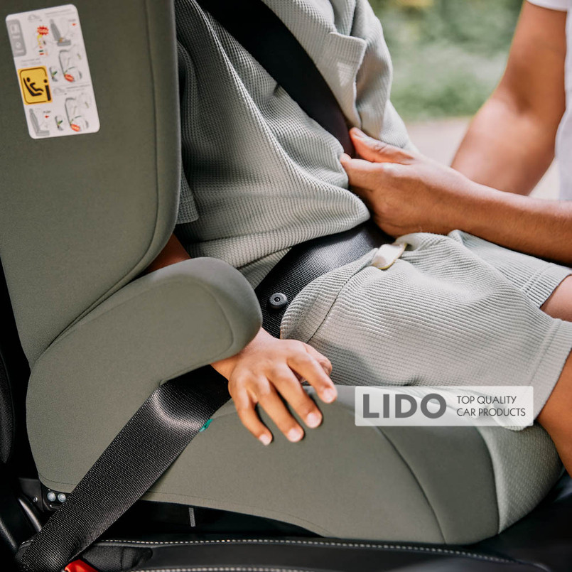 • Автокрісло надійно і легко кріпиться в автомобілі за допомогою Isofix і Top-Tether. Починаючи з росту 100 см, дитина пристібається 3-точковим ременем безпеки автомобіля, в цьому випадку достатньо установки Isofix, і верхній ремінь більше не потрібен.