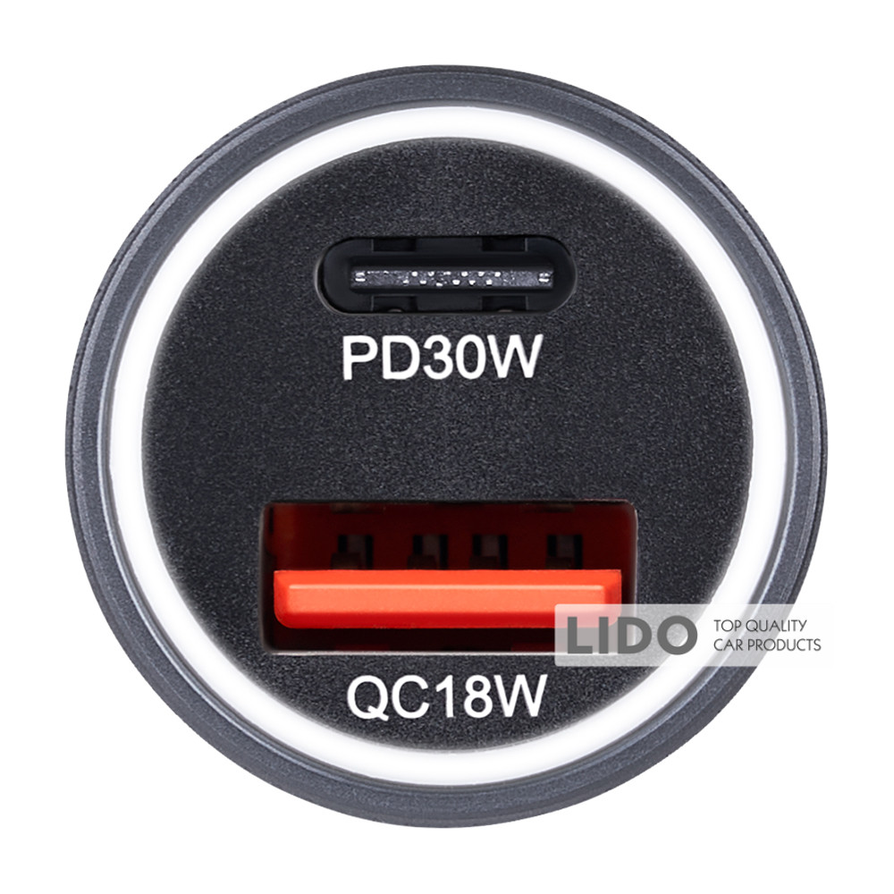 Міцний корпус з алюмінієвого сплаву забезпечує ефективне відведення тепла й довговічність, а біле LED-кільце додає зручності під час використання в темний час доби. Завдяки компактним розмірам зарядний пристрій не займає багато місця та ідеально підходить для щоденних поїздок.