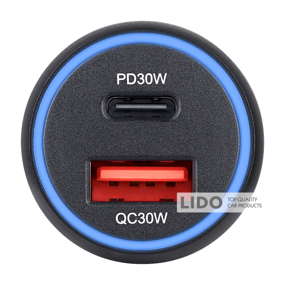 Автомобільний зарядний пристрій Brevia ePower Dual PowerMax Metal LED 60W 1xUSB-C+1xUSB-A