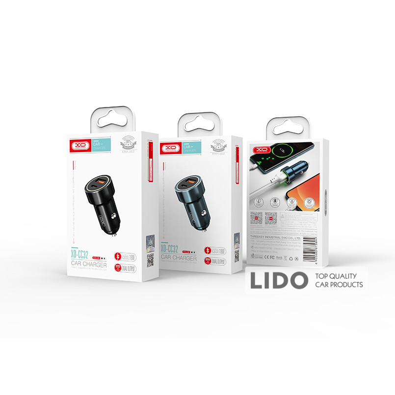 XO CC32 — це автомобільний зарядний пристрій, який вставляється в прикурювач вашого авто для зарядки мобільних пристроїв (телефонів, планшетів тощо).