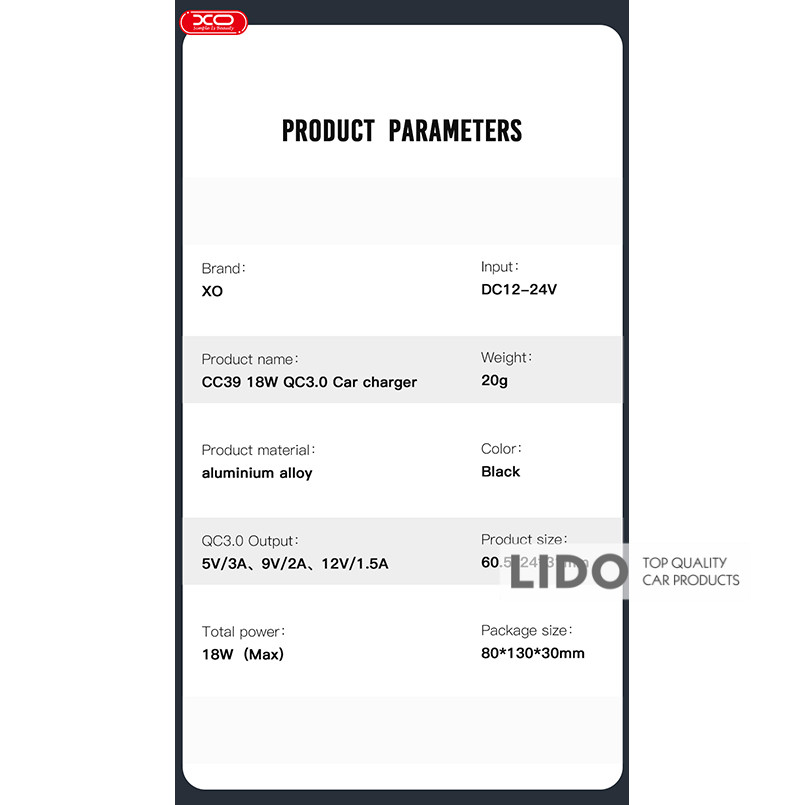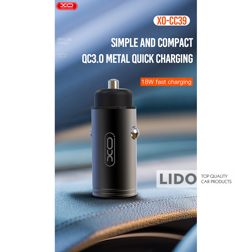 Автомобільний зарядний пристрій XO CC39 QC3.0 18W чорний