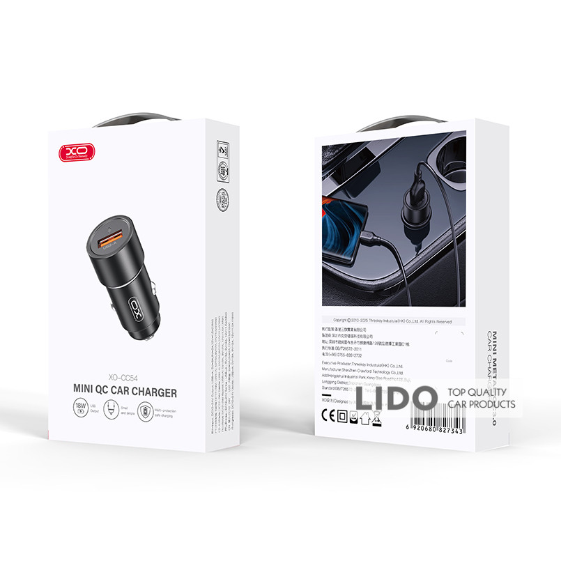 Автомобільний зарядний пристрій XO CC35 QC3.0 18W – швидка та надійна зарядка у дорозі.
