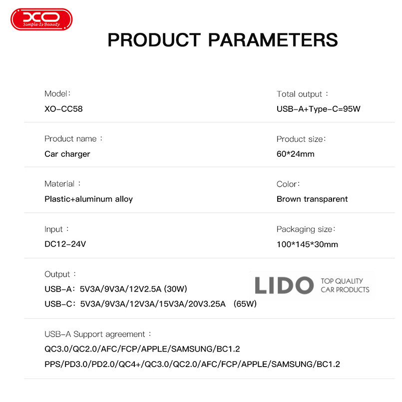 Мережевий зарядний пристрій XO L139 — це потужний та універсальний адаптер для швидкої зарядки сучасних пристроїв. Завдяки високій вихідній потужності та наявності трьох портів він дозволяє ефективно заряджати смартфони, планшети, навушники, павербанки та навіть ноутбуки з підтримкою живлення через USB-C.