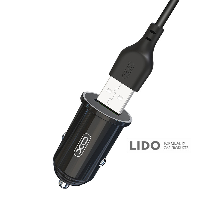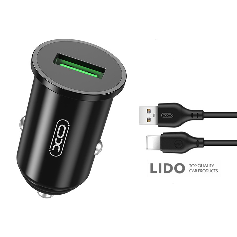 Автомобільний зарядний пристрій XO TZ12 QC3.0 18W + Lightning кабель чорний