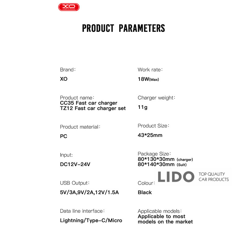 Представляємо вашій увазі елегантний та потужний автомобільний зарядний пристрій XO TZ12. Його чорний корпус поєднує стиль і надійність, що робить його ідеальним аксесуаром для вашого автомобіля. Незважаючи на свої компактні розміри, воно здатне забезпечити швидку та стабільну зарядку вашого пристрою завдяки технології Quick Charge 3.0.