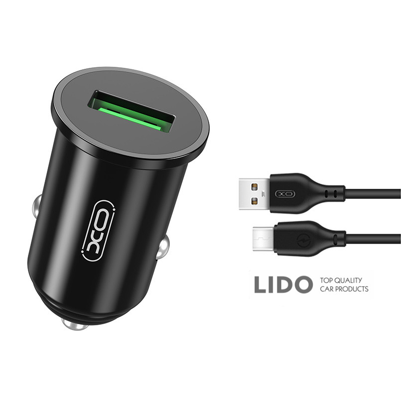 Автомобільний зарядний пристрій XO TZ12 QC3.0 18W + Type-c кабель чорний