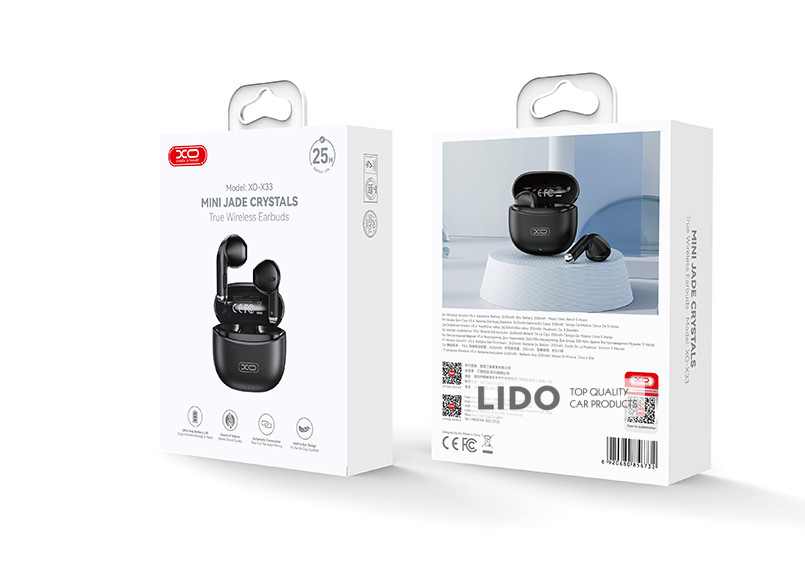 Бездротові навушники XO X33 – це сучасний пристрій для тих, хто цінує комфорт, зручність та якісне звучання. Завдяки технології TWS (True Wireless Stereo) вони забезпечують справжню свободу рухів без зайвих дротів і обмежень. Ця модель поєднує в собі стильний дизайн, сучасні технології та чудову автономність, що робить її ідеальним варіантом як для щоденного використання, так і для занять спортом, роботи чи подорожей. Завдяки підтримці Bluetooth 4.1 навушники гарантують стабільне з'єднання з пристроєм, мінімальні затримки та високу якість звуку під час відтворення музики та голосових дзвінків.
