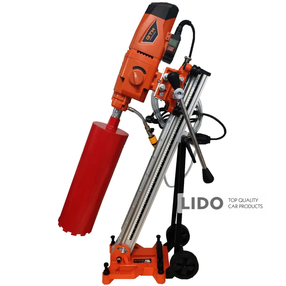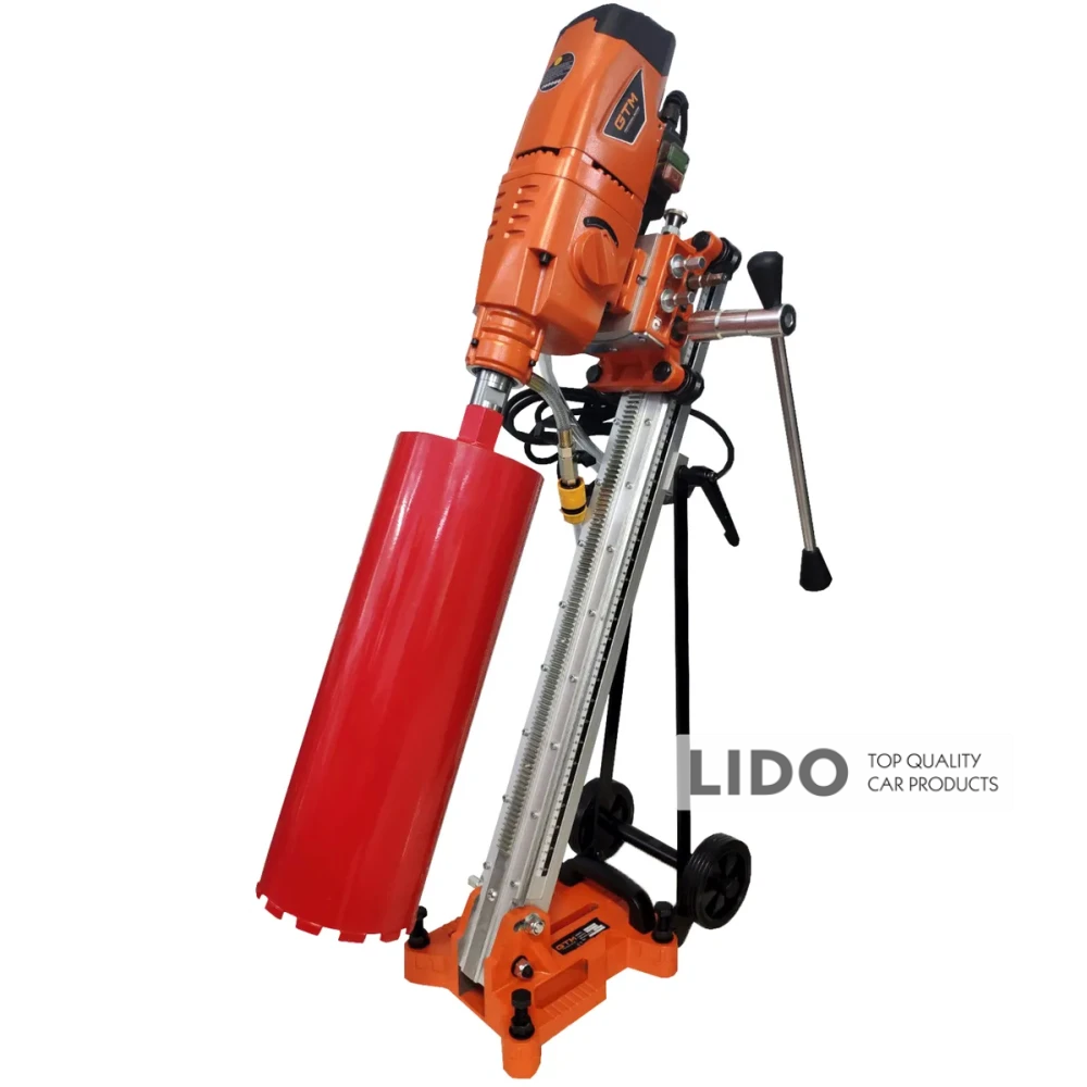 Бурильна установка GTM DK-250/2/45 — електрообладнання для мокрого буріння отворів у бетонних, кам’яних, цегляних та гранітних поверхнях за допомогою алмазних коронок. Модель фіксується на спеціальній стійці (станині), яка входить до стандартної комплектації.