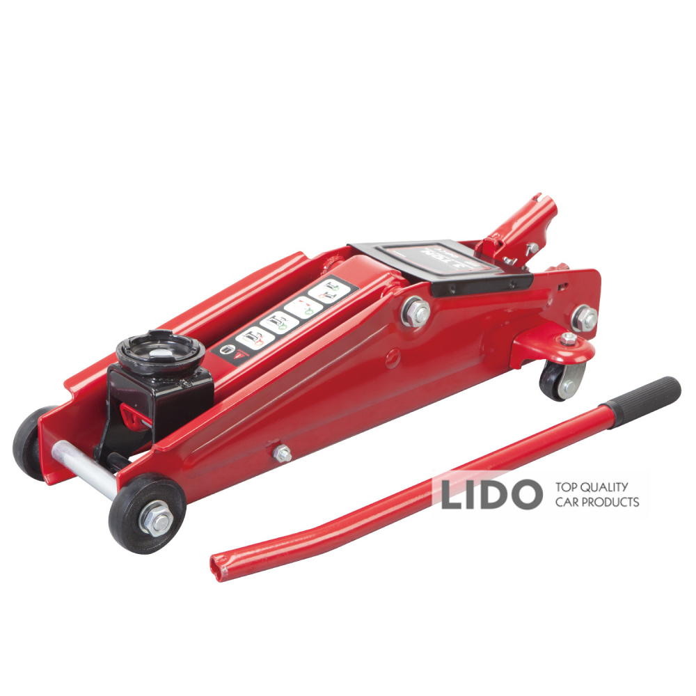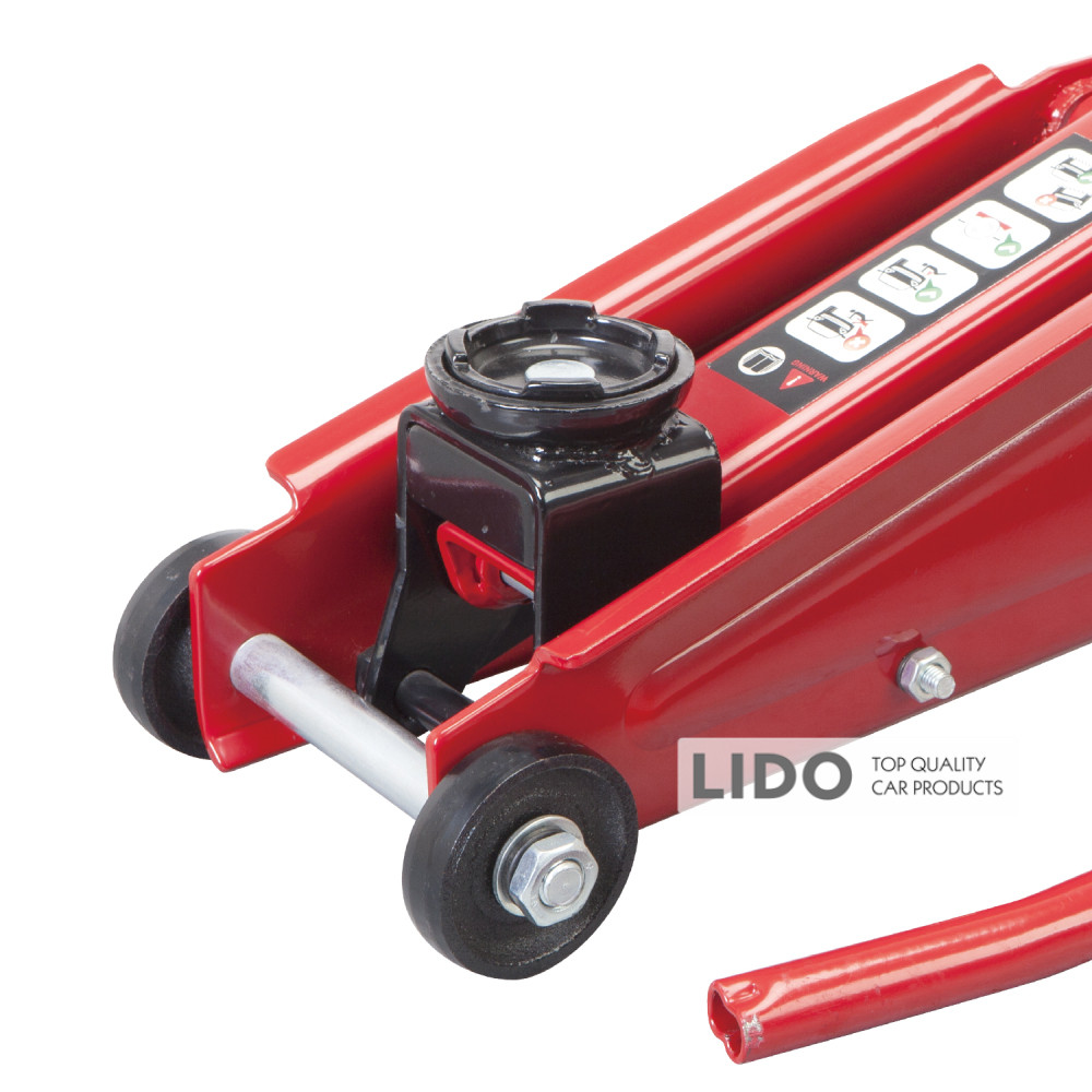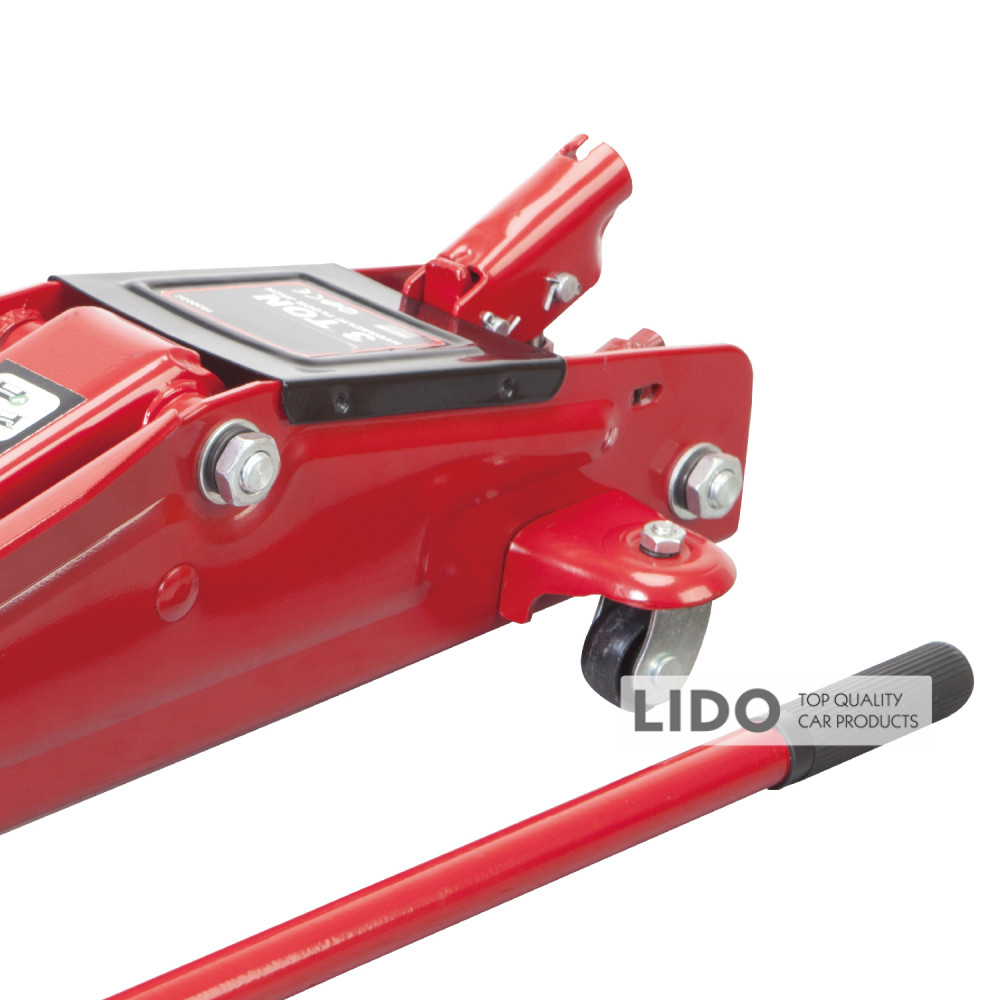 GTM T830020 – напівпрофесійний підкатний домкрат для підняття та фіксації вантажів вагою до 3 т. Має низьку висоту підхоплення та колеса для зручного переміщення.
