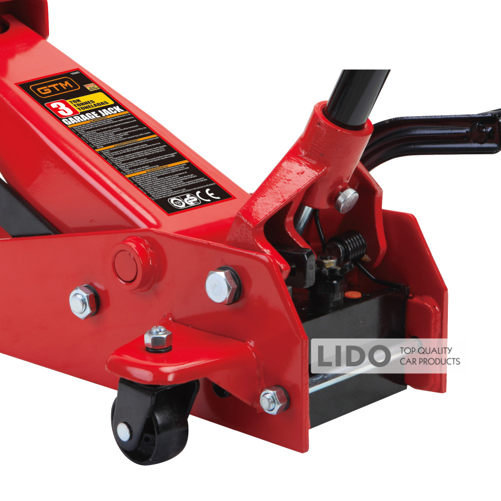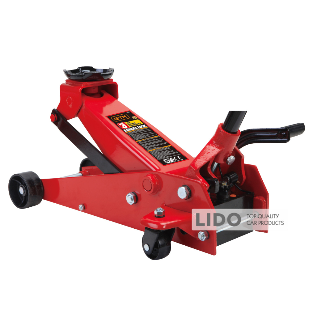 GTM T83502 – напівпрофесійний підкатний домкрат для підняття та фіксації вантажів вагою до 3.5 т. Має низьку висоту підхоплення та швидкий підйом завдяки педальному механізму.