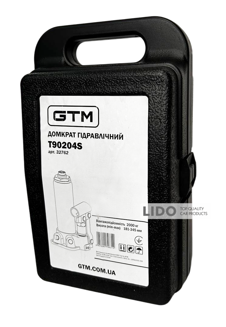 Домкрат гідравлічний пляшковий GTM Т90204S 2т 181-З45мм у кейсі