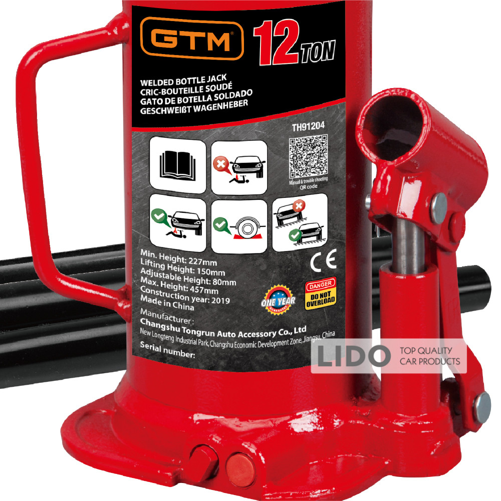 Домкрат гідравлічний пляшковий GTM TH91204 12т 240-460мм