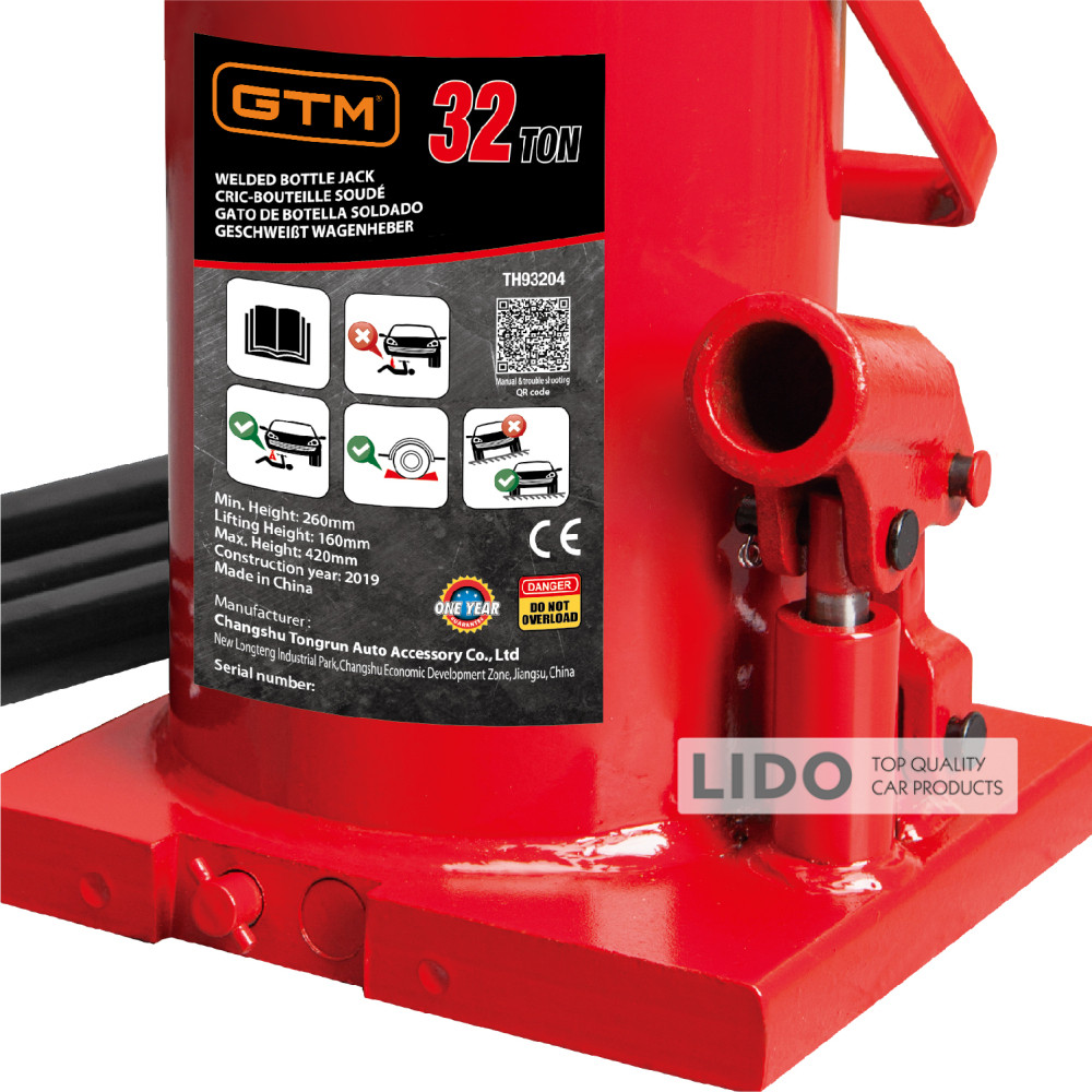 Домкрат гідравлічний пляшковий GTM TH93204 32т 260-420мм