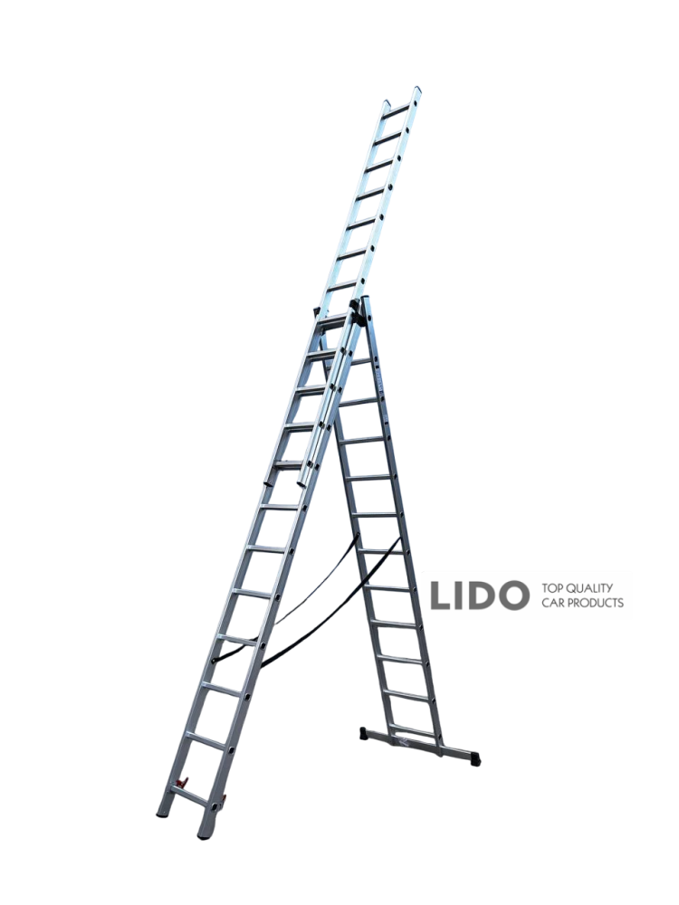 Універсальні 3-секційні драбини GTM — це надійні та багатофункціональні драбини, які можна використовувати як приставні або висувні драбини, а також як стрем’янки. Посилений профіль, сходинки з антиковзким покриттям, додатковий стабілізатор та надійні металеві фіксуючі замки гарантують безпечну експлуатацію.