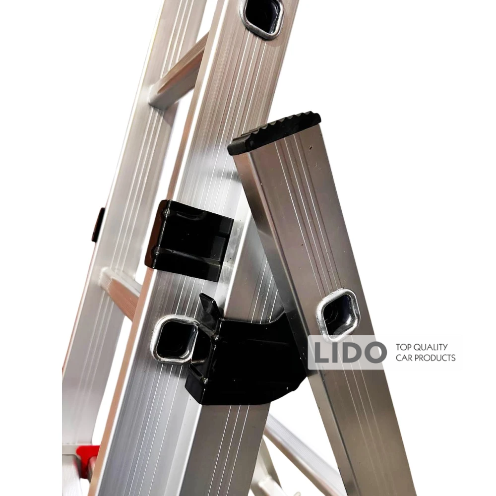 Алюмінієвий профіль, використаний для виготовлення драбин, забезпечує легкість транспортування, довговічність експлуатації та стійкість до корозії і механічних пошкоджень.
