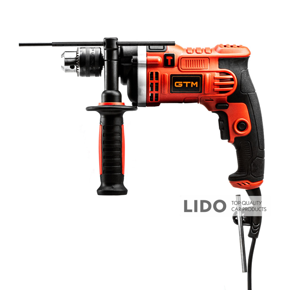 Ударний дриль GTM DI-13/750ER(M) комплектується ключовим патроном, обмежувачем глибини свердління та додатковою рукояткою.