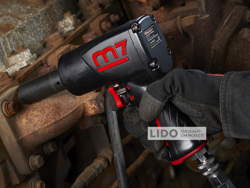 Пневмогайкокрут Mighty Seven NC-4277Q — пневматичний ударний гайкокрут промислового класу, спеціально розроблений для роботи в обмеженому просторі. Максимальний крутний момент становить 1564 Нм, а частково композитний корпус значно зменшує вагу інструменту.