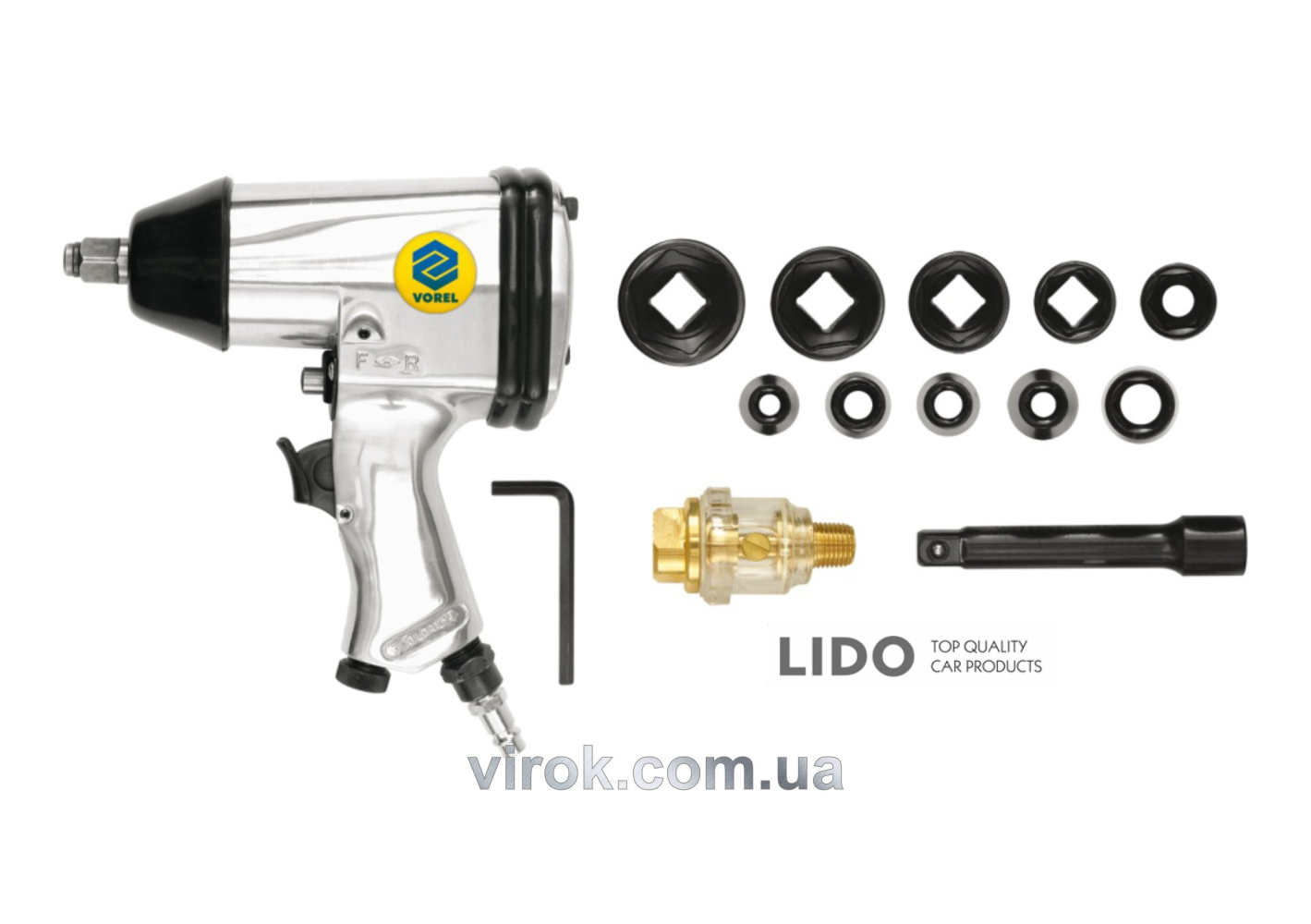 Гайковерт пневматичний VOREL 1/2" + аксесуари + кейс 81101