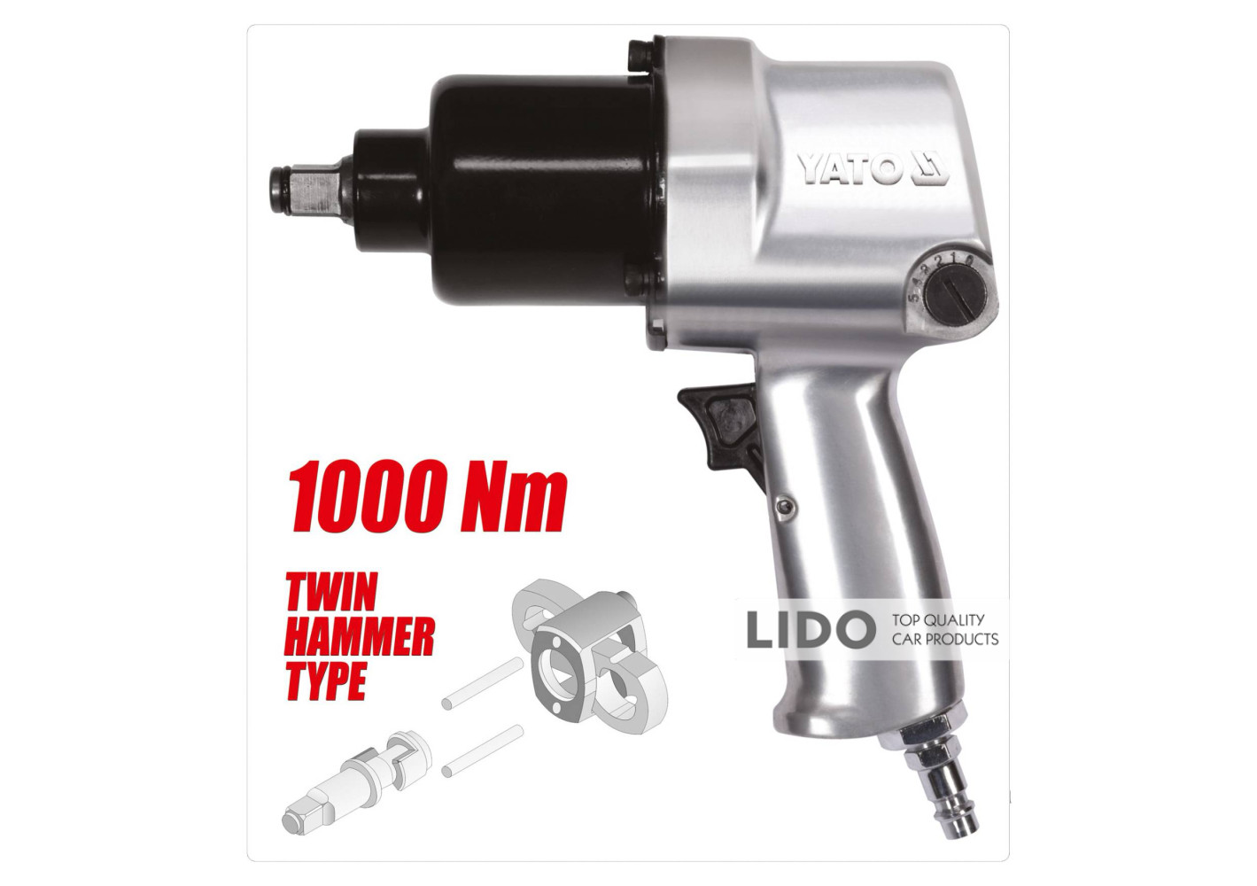 Гайкокрут пневматичний YaTo ударний 1/2" 1000Нм 6000об/хв