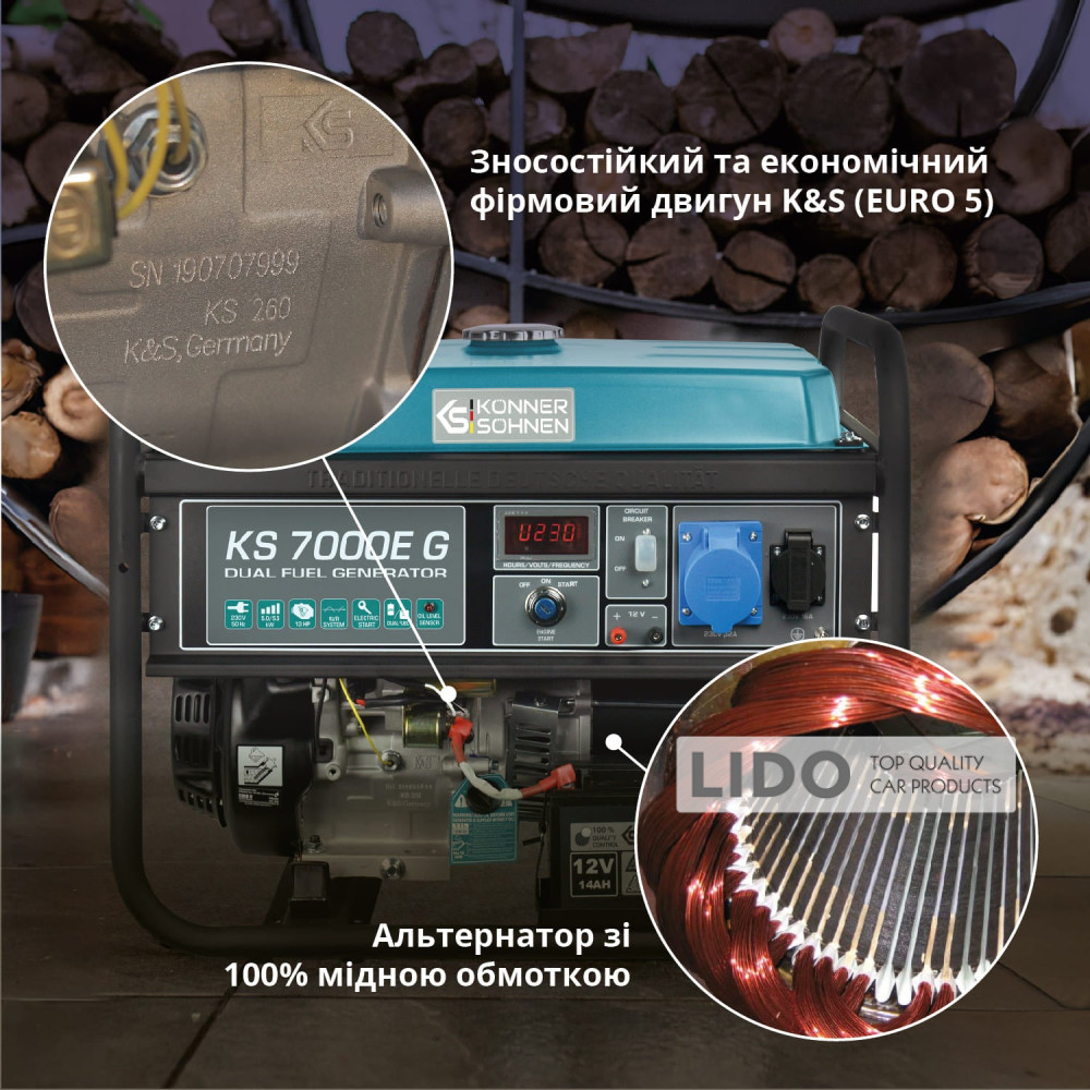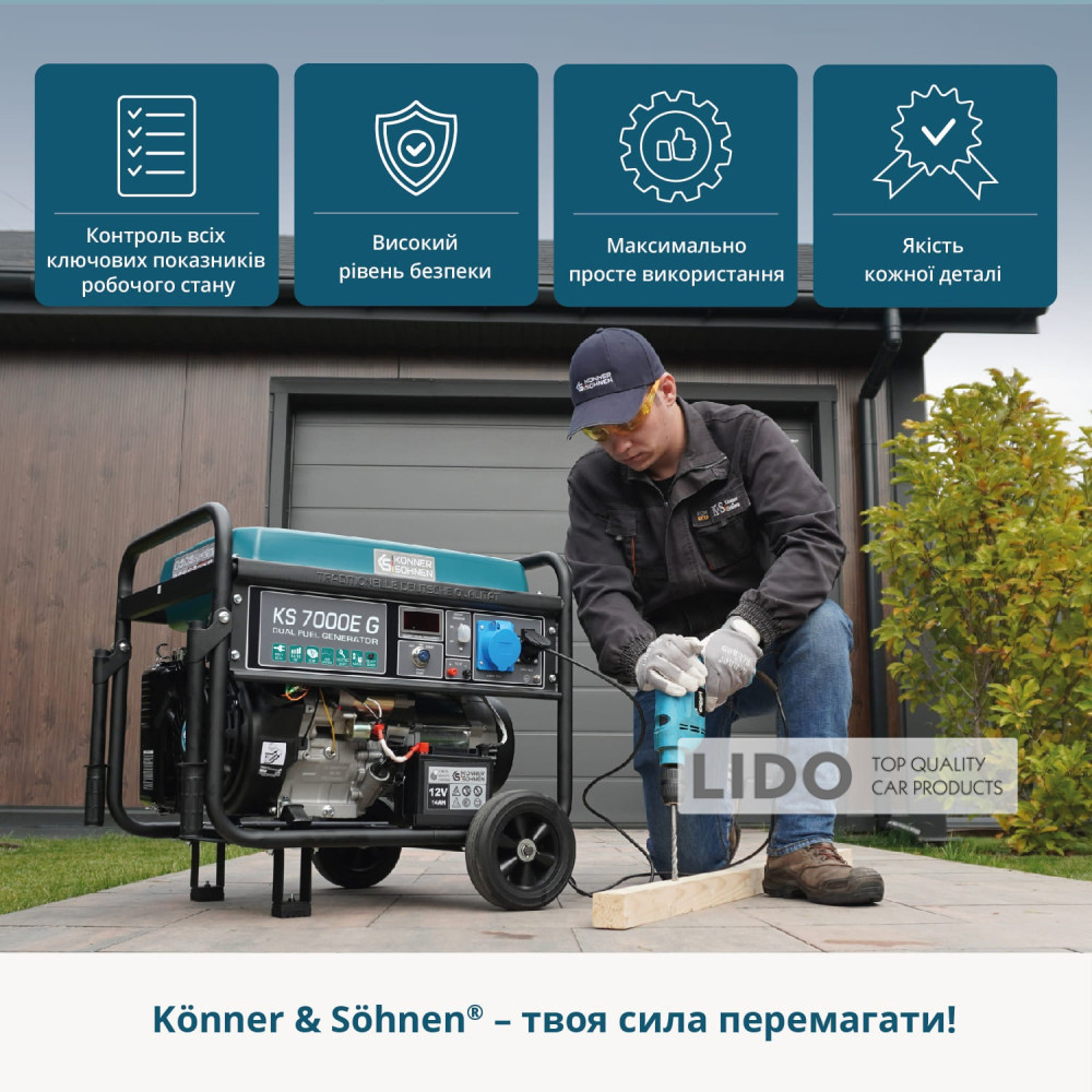 Використання газу в якості палива суттєво знижує витрати на пальне при експлуатації пристрою, а різниця вартості між бензиновим та гібридним генератором DUAL FUEL від K&S швидко себе окупає. -