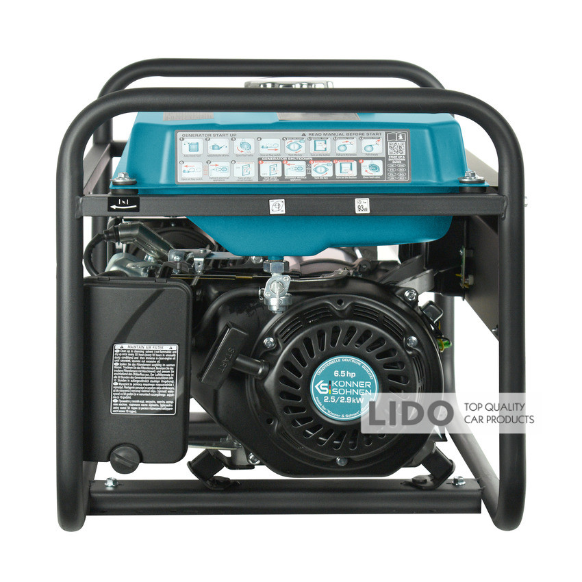 Паливний бак збільшеного розміру з індикатором рівня палива подовжує час роботи генератора без дозаправки. Місткість — 25 л. -