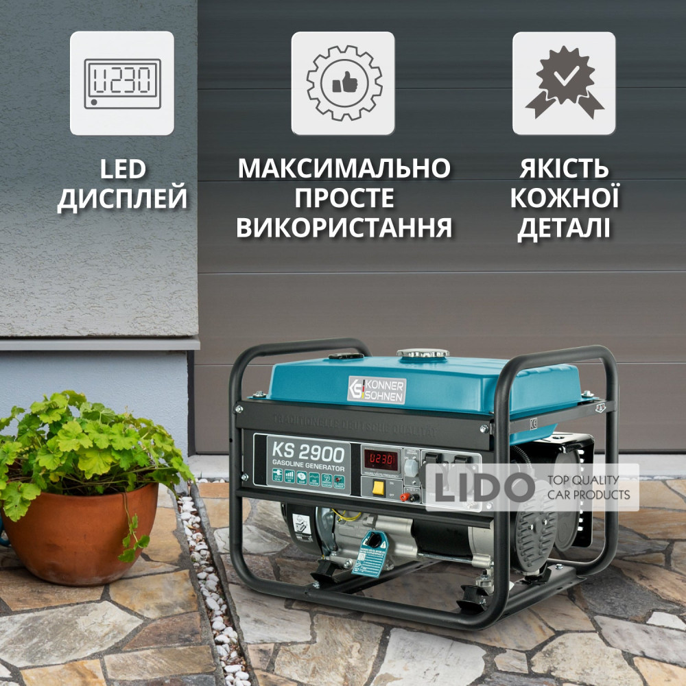 - Під час роботи на газі генератор зберігає свою потужність, не виробляє шкідливих вихлопних газів і працює тихіше.