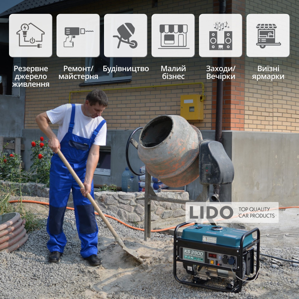 - Тип двигуна: Газовий/бензиновий 1-циліндровий, 4-тактний з повітряним охолодженням