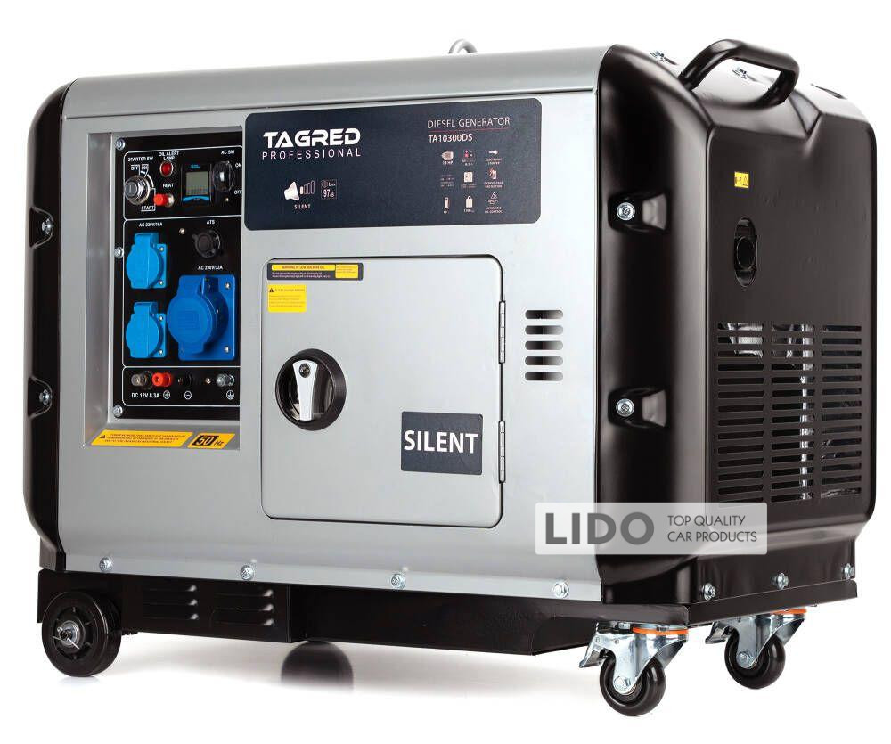 Дизельний генератор TAGRED TA10300DS – потужний генератор для автономної та аварійної подачі електроенергії для будівельних майданчиків, саду. Підходить для постійного та тривалого користування.