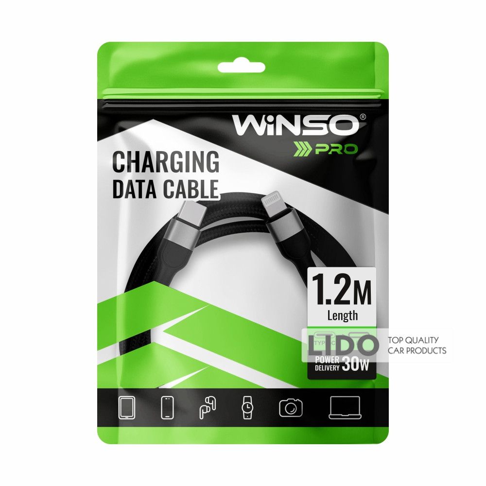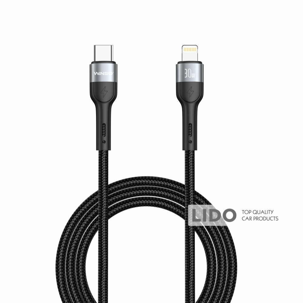 Кабель Winso Pro Type-C to Lightning 30W TPE+плетіння 1,2м чорний
