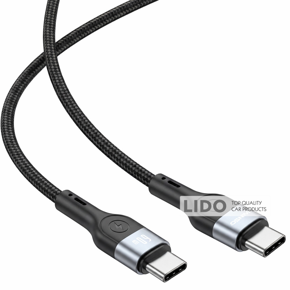 Кабель Winso Pro Type-C to Type-C 60W TPE+плетіння 1,2м чорний
