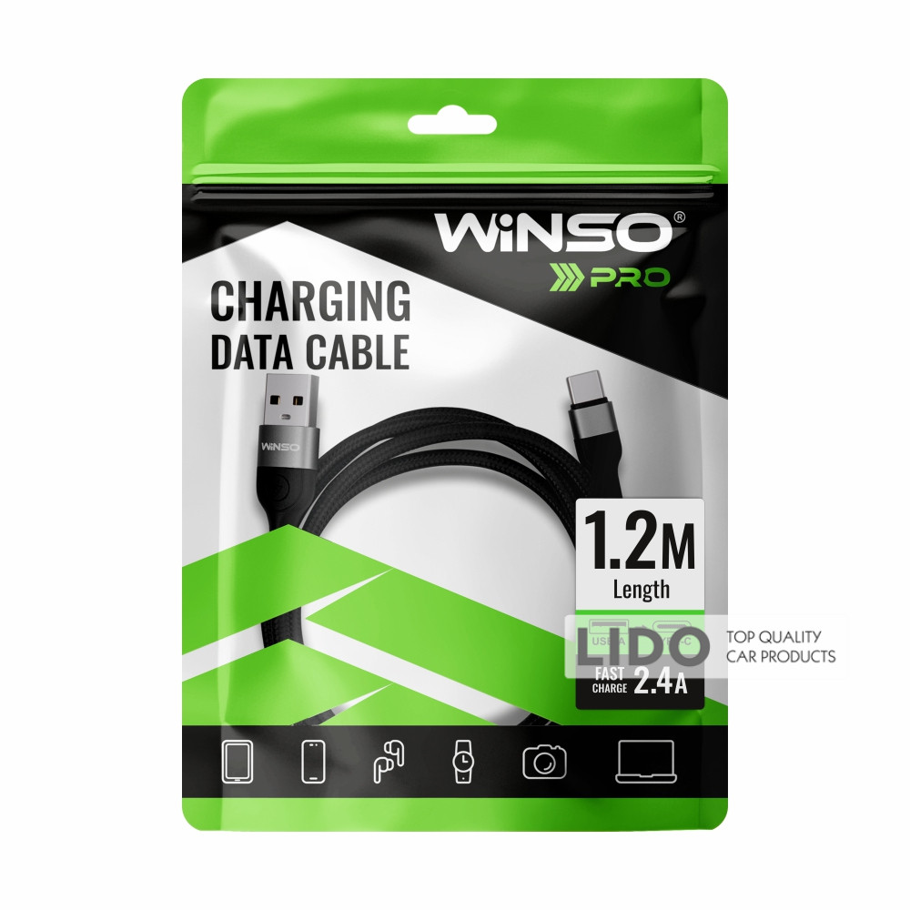 Кабель Winso Pro USB to Lightning TPE+плетіння 1м — це надійний аксесуар для заряджання та синхронізації пристроїв із роз’ємом Lightning.