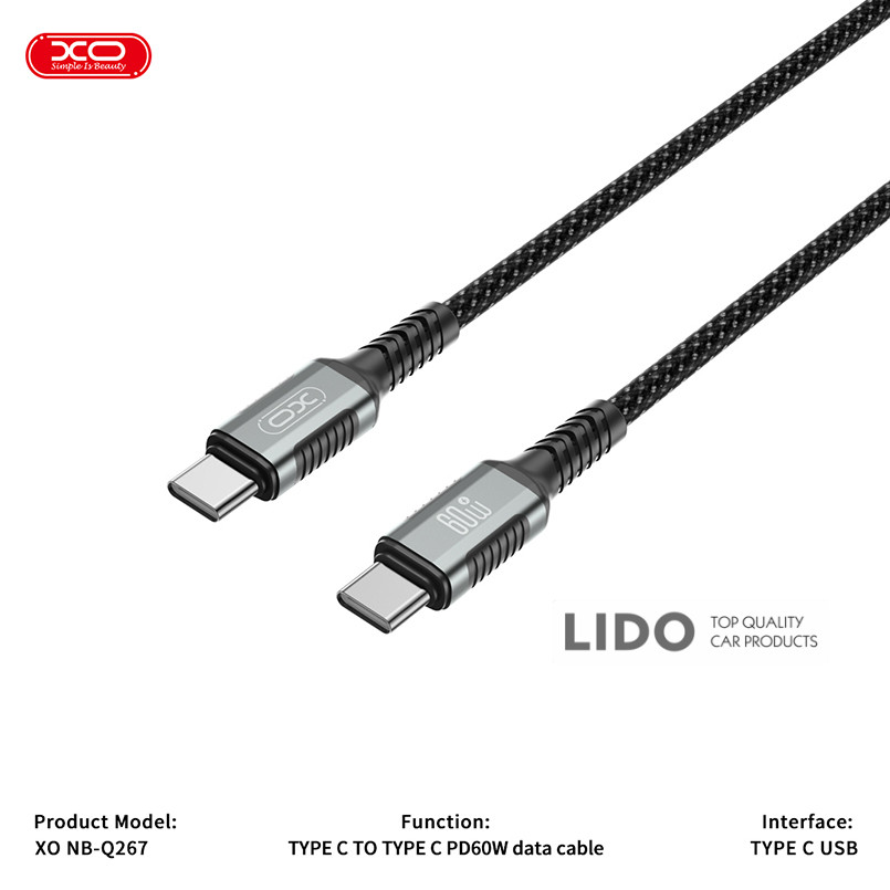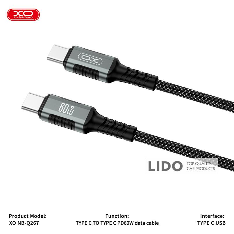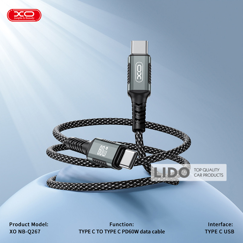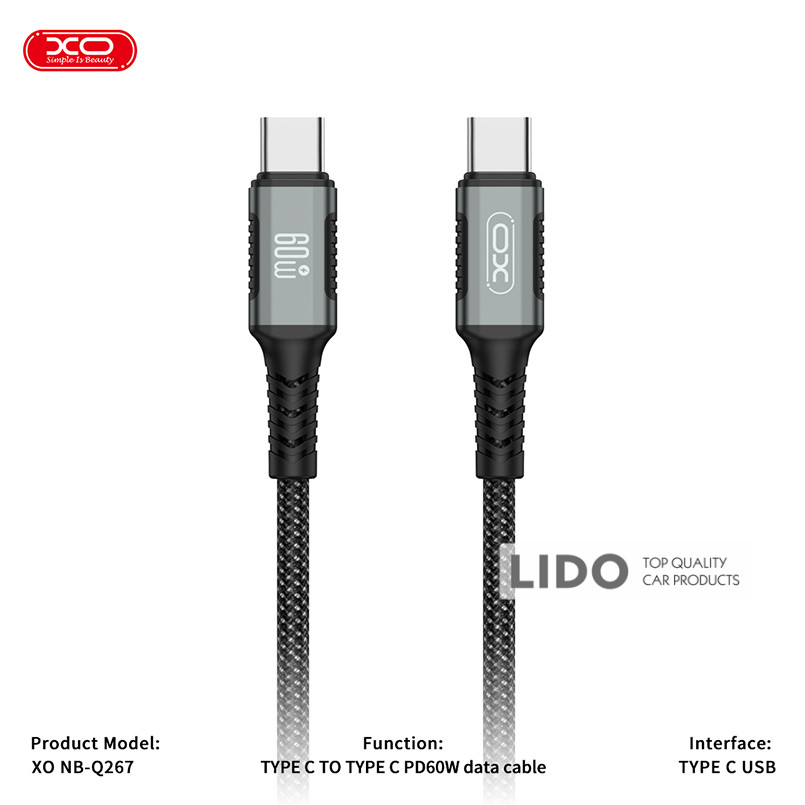 Кабель XO NB-Q267 Type-C to Type-C (1M) Fast Charging — високоякісний кабель для швидкої зарядки та синхронізації пристроїв із роз'ємом Type-C. Ідеально підходить для зарядки смартфонів, планшетів та ноутбуків, що підтримують Power Delivery (PD).