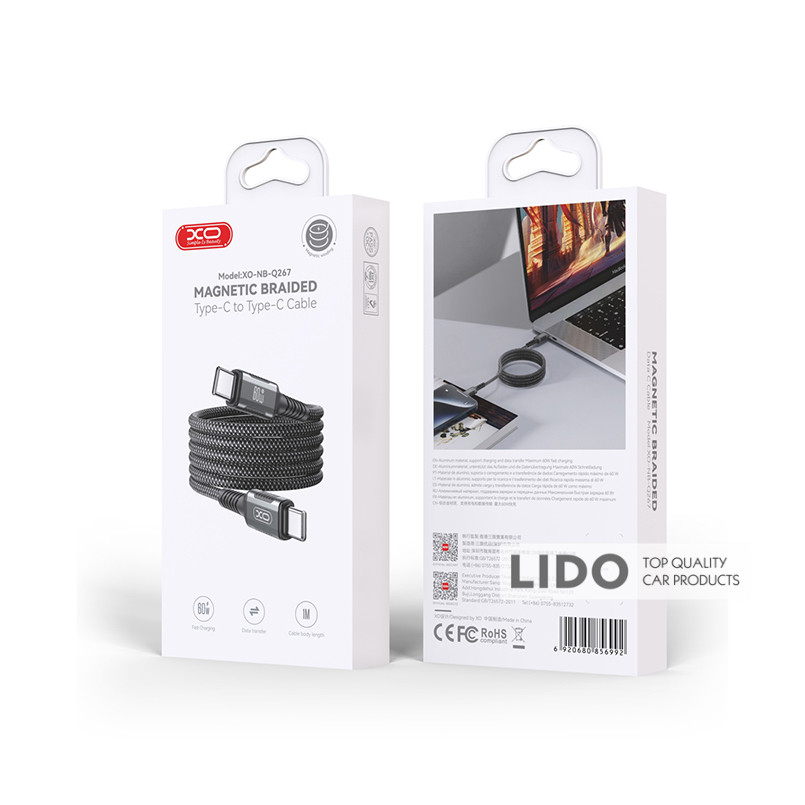 Кабель XO Magnetic Braided Type-C to Type-C 60W 1м чорний