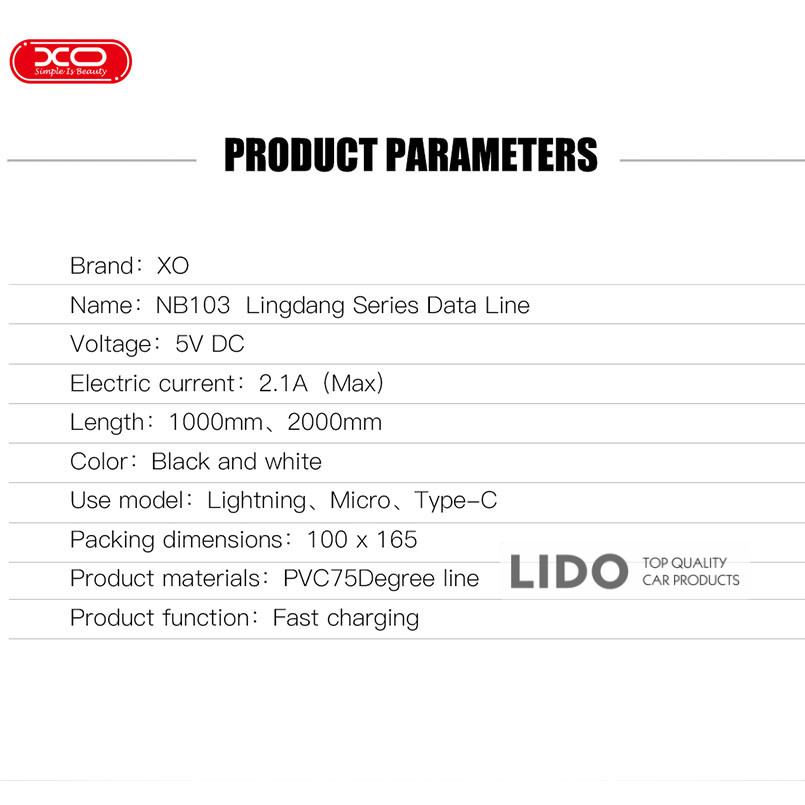 Кабель XO NB103A White — це USB-кабель довжиною 1 м для заряджання пристроїв зі штекером Lightning та передачі даних між пристроями та джерелом живлення або комп’ютером.