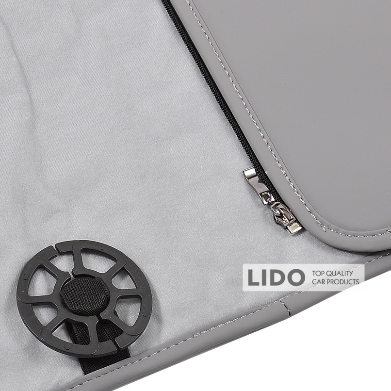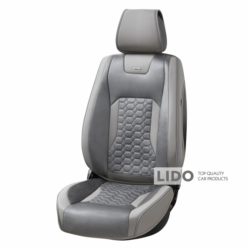 - Матеріал центральних вставок — "Алькантара", колір — сірий, декоративна шовкова нитка — сіра.