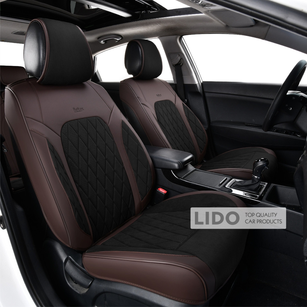 - Матеріал центральних вставок — "Алькантара" з перфорацією, колір — чорний, декоративна шовкова нитка — чорна.