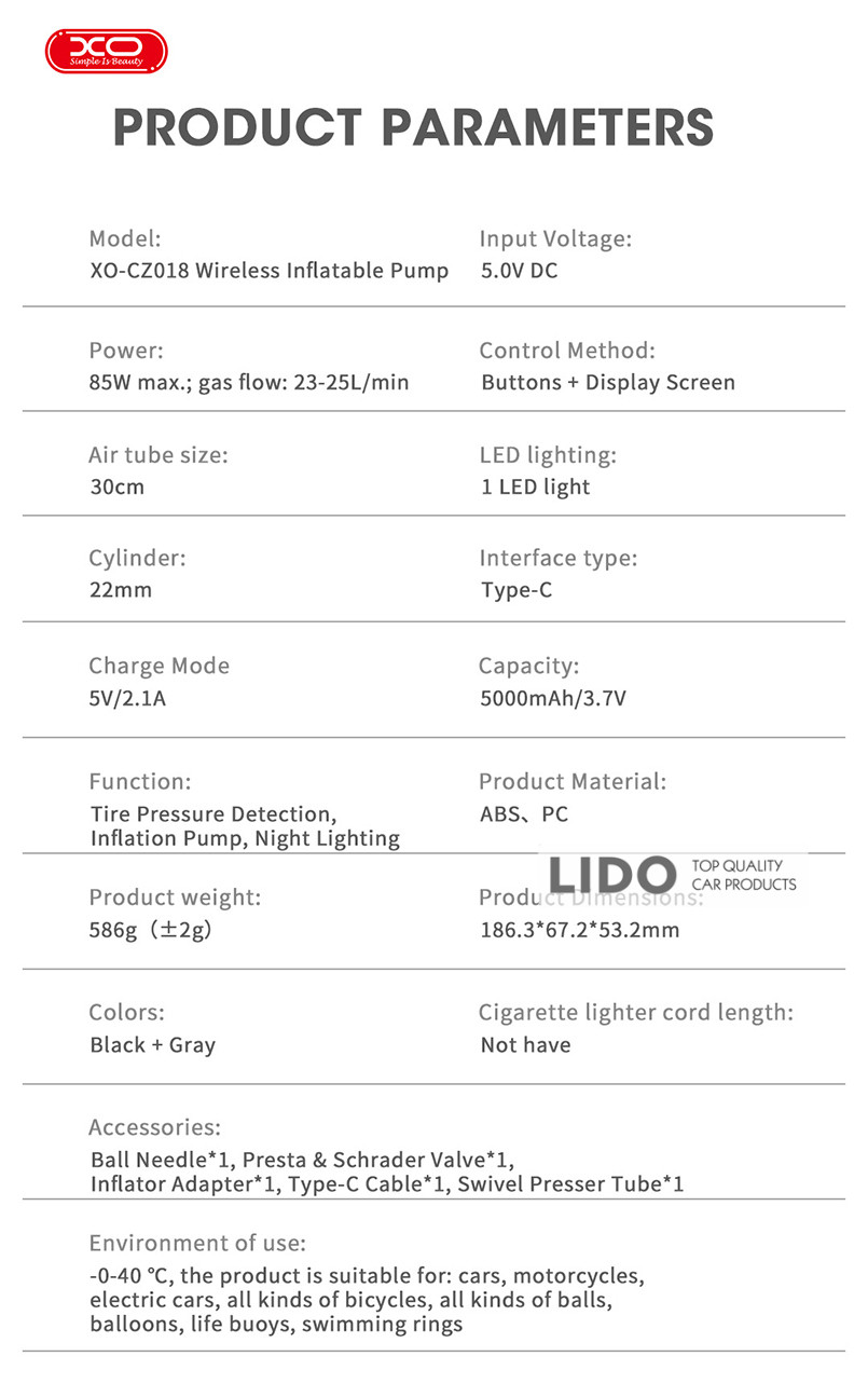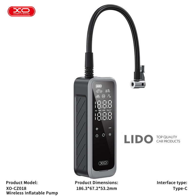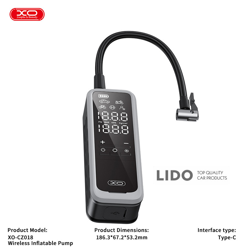 XO CZ018 — бездротовий автокомпресор, незамінний помічник для швидкого та надійного накачування в будь-яких умовах. Завдяки потужному двигуну він дозволяє швидко надувати шини, м’ячі та інші вироби, заощаджуючи твій час і зусилля.
