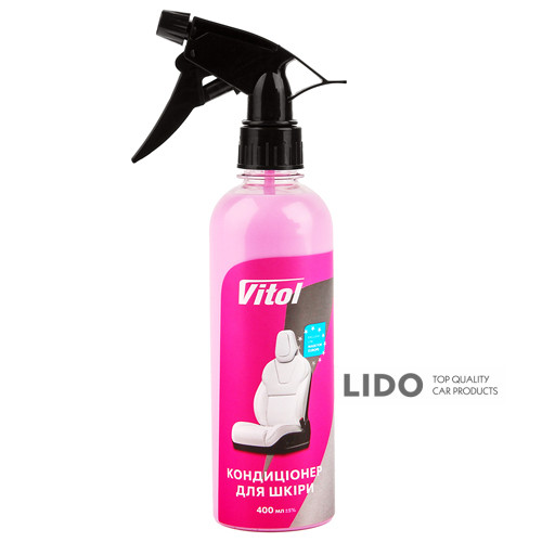 Кондиціонер для шкіри VITOL – це ефективний засіб для догляду за натуральною та штучною шкірою в автомобілі та побуті. Засіб відновлює еластичність і м’якість шкіряних поверхонь, захищає їх від пересихання, розтріскування та вигорання на сонці. Завдяки спеціальній формулі кондиціонер живить шкіру, зберігає її природний вигляд і надає легкий блиск без жирних слідів.